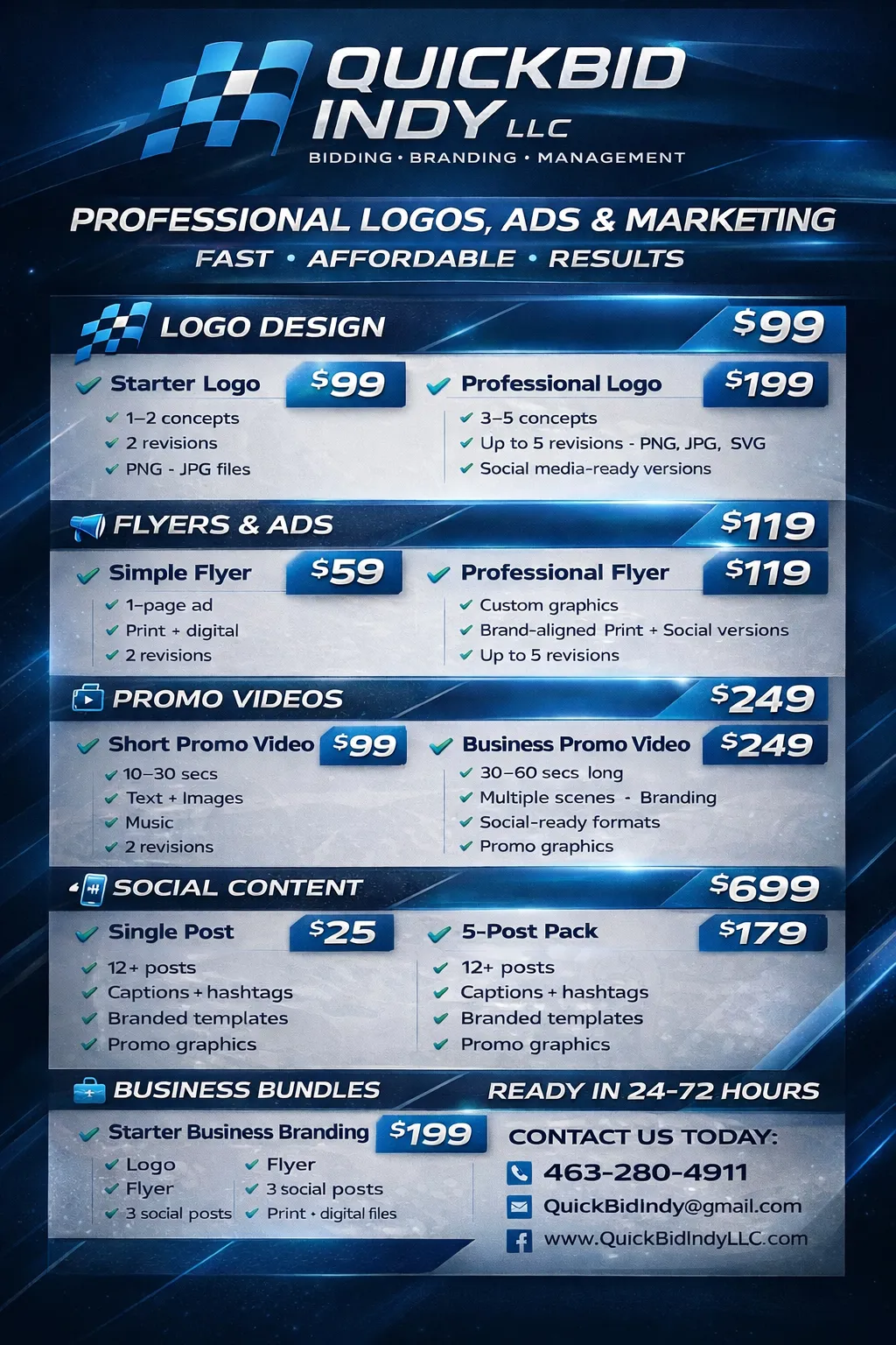For Branding & Marketing Sevices, material selections drive most of the cost variation. Custom cabinets, high-end fixtures, and premium finishes add up quickly. We'll help you balance your wish list with your budget during the design phase.